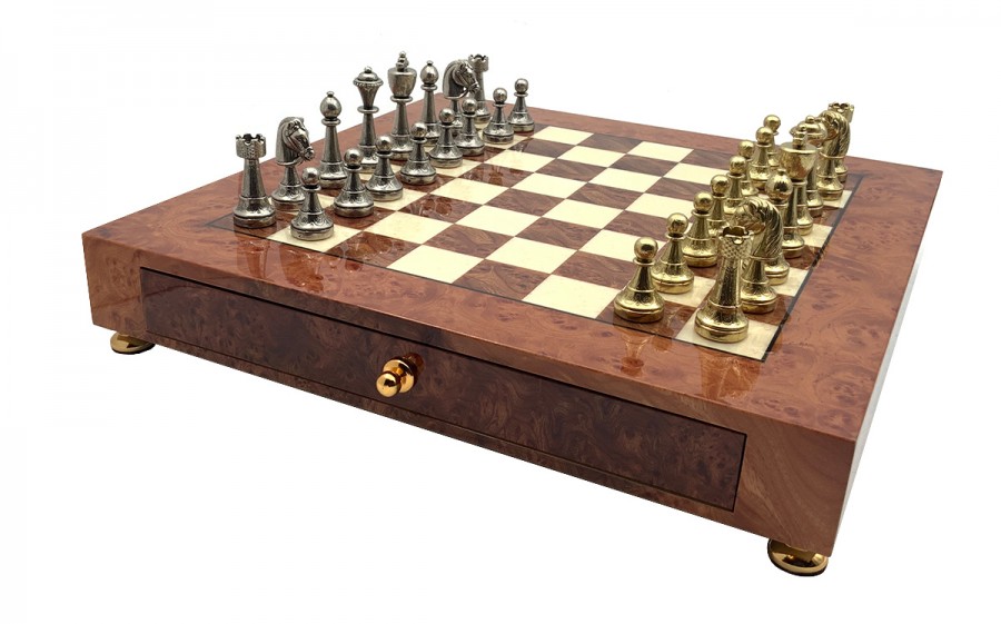 Шахи всесвітньо відомого італійського бренду Italfama. Дошка виготовлена із дерева. Розмір дошки: 42 x 42 cm, розмір квадрата: 4 cm. Фігурки колекції "Staunton" виготовлені з латуні та нікелевого покриття.
