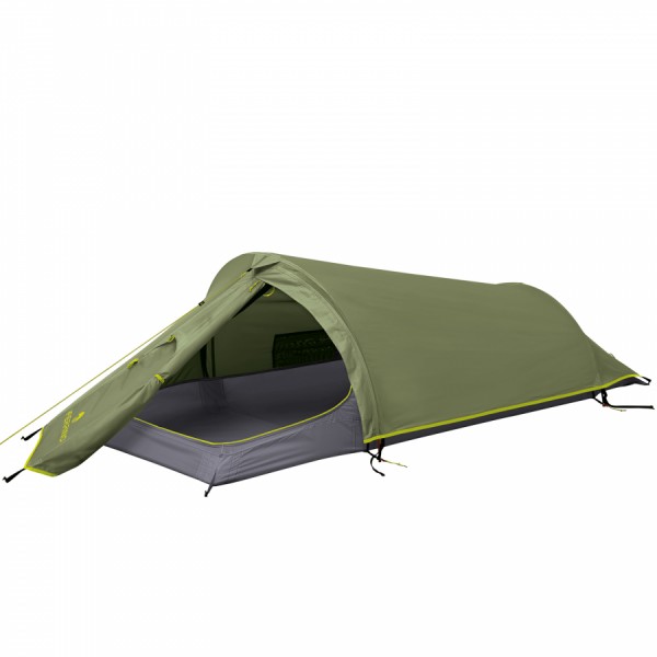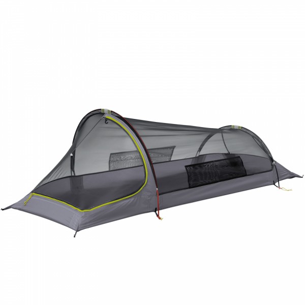 Намет Ferrino Sling 1 Green відноситься до серії трисезонних наметів Ferrino і стане знахідкою для тих, хто шукає легкий намет з невеликим тамбуром та мінімальним часом установки для поодиноких складних сходжень або легкохідного туризму. Всі ці переваги забезпечує тунельна конструкція намету. Не дивлячись на те, що намет двошаровий, його чиста вага становить менше кілограма. Внутрішній намет повністю складається з москітної сітки, його можна використовувати окремо від зовнішнього тенту в теплі ночі. Ступінь водозахисту цілком достатня, щоб, при правильній установці, зберегти намет усередині сухого під час дощу, а враховуючи водовідштовхувальне просочення і проклеєні шви, варто побоюватися хіба що затяжних або інтенсивних дощів. Ефективна система вентиляції Camera Air доповнена двома вентиляційними вікнами для запобігання утворенню конденсату. Чохол намету має компресійні стяжки, що дозволяє досягти компактних розмірів упакованого намету.