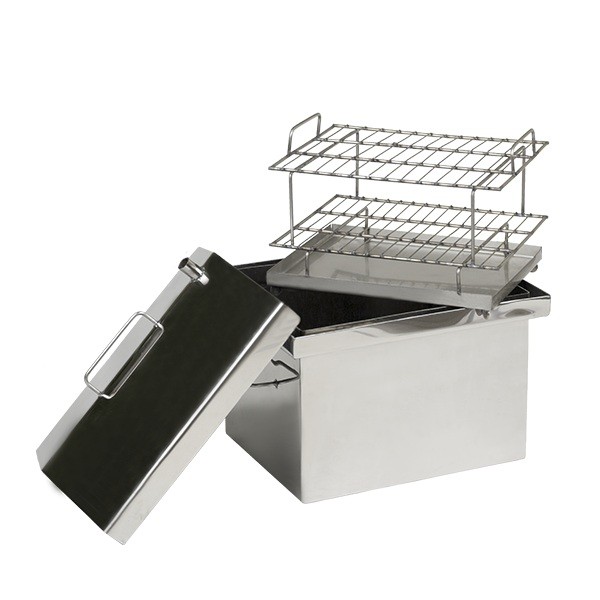 Якщо незвичайні та смачні страви – ваш коник, коптильня гарячого копчення мала скришкою будиночком – саме те, що вам потрібно. Невеликий розмір, а також легка вага дозволяють переносити виріб з місця на місце, адже з ним можна готувати як на вулиці, так і в будинку. У машині вона не займе багато місця, тому можна брати її на природу і закоптити прямо біля річки щойно спійману рибку. Не забудьте тільки захопити з собою тирсу. Виготовляється коптильня зі сталі (товщина стінок – 1,5 мм, днища – 2 мм). Має дві грати з харчової нержавіючої сталі. Також відмінною рисою є кришка, що має форму будиночка, з наявністю гідрозатвора. Продукти, підкопчені за власним рецептом, подарують незабутні смакові відчуття. А якщо ви все зробили самі – це ще й впевненість у вживанні натуральної та якісної продукції, а також турбота про близьких людей.