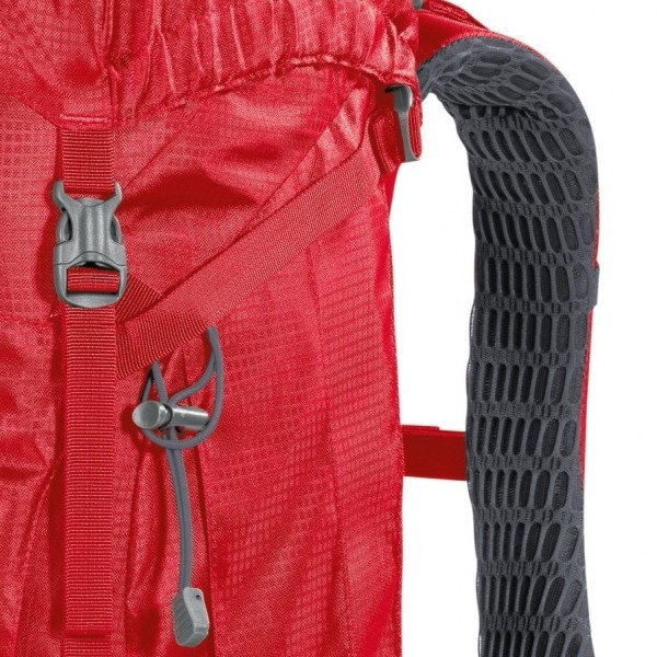 Ice-axe holders (2) - держатели для ледорубов размещаются в верхней и нижней части фасада альпинистского рюкзака и, как правило, представляют собой комбинацию нижних длинных петель или усиленных шнуров и верхних стяжных эластичных шнуров с фиксатором или небольших стяжек на текстильной застежке velcro. Такие держатели позволяют надежно фиксировать ледорубы и не загружать ими внутреннее пространство рюкзака. При необходимости держатели могут быть использованы и для крепления треккинговых палок. Данный рюкзак имеет две пары креплений для ледоруба, совмещенных с креплениями для треккинговых палок