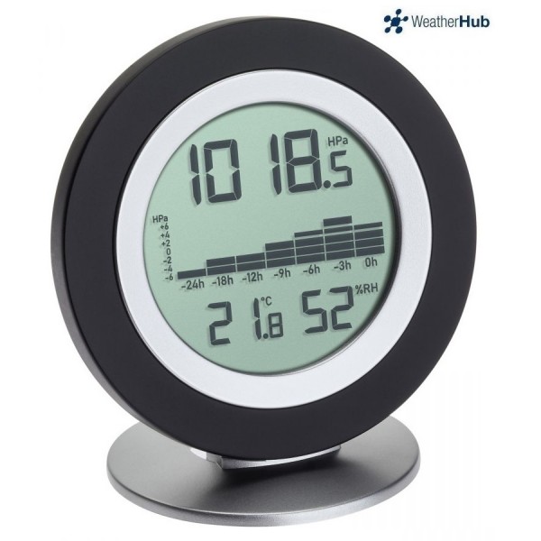 Як місцева погода розвивається сьогодні? Просто погляньте на метеостанцію COSY BARO і ви будете в курсі подій. Вбудований електронний барометр вимірює тиск повітря; Історію протягом останніх 24 годин можна спостерігати на гістограмі. Якщо бари піднімаються, значить погода покращується. Якщо тиск повітря впав, очікується погіршення погоди.