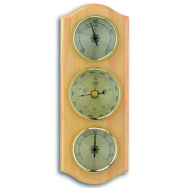 Метеостанція з масиву дерева складається з барометра, термометра та гігрометра. Барометр вимірює тиск повітря та дозволяє вам скласти місцевий прогноз погоди. У той час як погода покращується зі збільшенням тиску повітря, зниження тиску повітря означає, що ви повинні очікувати погану погоду. Контролюючи температуру та вологість у приміщенні, ви можете створити комфортний та здоровий клімат у приміщенні та заощадити на витратах на опалення. Станція повністю виготовлена у Німеччині.