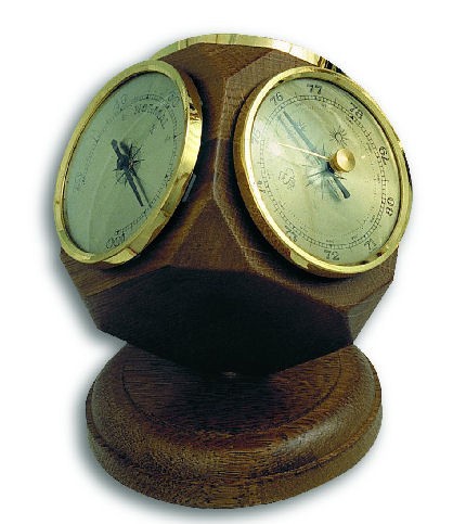 Настільна метеостанція з масиву дуба складається з барометра, термометра та гігрометра.