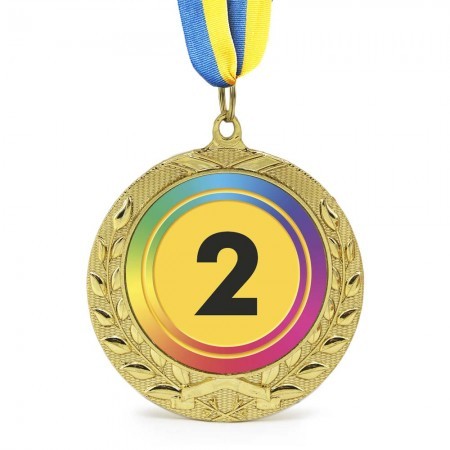 Медаль за досягнення у змаганнях – результат великої роботи. Нагорода, здобута згодом і завзятістю. Тому і виглядати вона має гідно. Медаль нагородна № 2 місце Веселка в золотому обрамленні лаврового листя - справить враження і, безперечно, стане чудовим подарунком на згадку! Медаль виконана з металу з покриттям благородного золотистого кольору, діаметром 7 см, розміром жетону 5см та репсовою жовто-блакитною стрічкою довжиною 40см, упакована в подарункову коробку з картону.