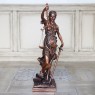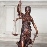 Відмінний подарунок для адвоката чи людини, пов'язаної із судом. Класична статуетка феміда середня бронзового кольору (з полістоуну). Виготовлена у розмірах: 42*18*18см. Всі складки одягу або волосся зроблені так, ніби це справжня людина. Дуже детальна та продумана фігура. Йде на маленькій квадратній підставці. Фігура в туніку з розрізами, що відкриває ноги. З зав'язаними очима вона тримає в правій руці меч, а в ліві ваги. Під ногами у неї книга і тіло змії, яку вона притискає ногою – що дуже символічно та образно. Така фігурка підійде для офісу чи робочого кабінету. І як якісний та цікавий подарунок на день народження колезі, другу, начальнику.