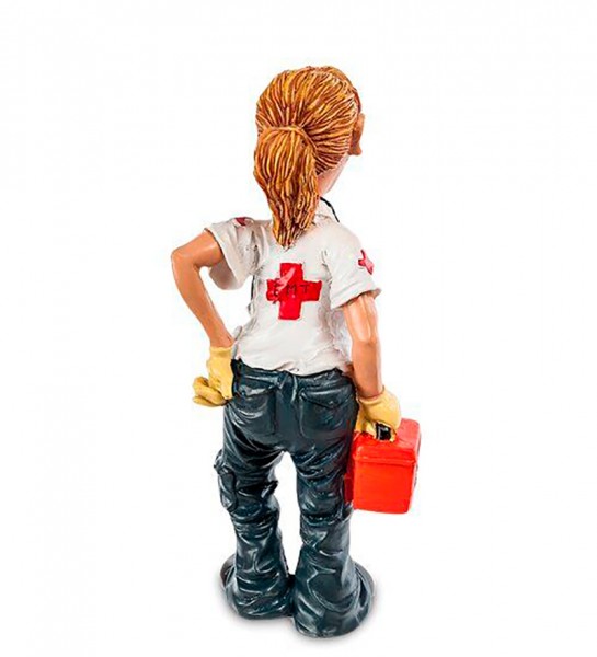 Кумедна статуетка лікаря. "Так, і хто тут у нас хворий?". Коли за викликом для швидкої допомоги є така молода і симпатична жінка-лікар, у всіх чоловіків відразу зникає бажання вважати себе хворими. Але якщо бадьорого вигляду і ласкавих очей виявляється недостатньо, то ось, дивіться, валізка з найнеобхіднішим.