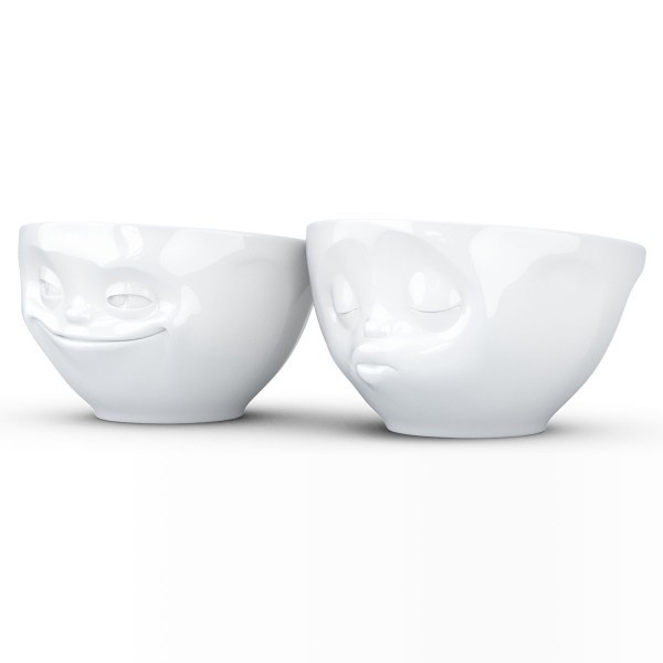 Білі порцелянові піали Tassen Kissing Grinning з милими закоханими личками, що виражають свої почуття, розроблені дизайнерами німецької компанії 58 Products спеціально для закоханої пари, не можуть залишитися непоміченими у романтичній трапезі чи затишному сімейному чаюванні. Німецька компанія «58 Products» виготовляє унікальні фарфорові вироби з мімікою. Ці піали здатні зробити кухню по-справжньому затишною, привнести до неї неповторності та шарму.