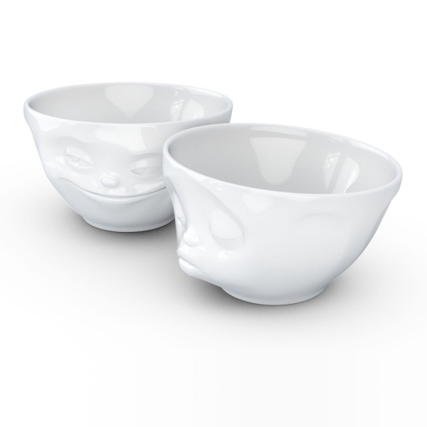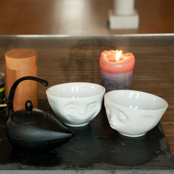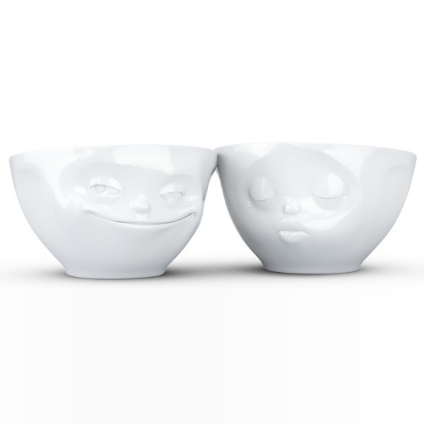 Білі порцелянові піали Tassen Kissing Grinning з милими закоханими личками, що виражають свої почуття, розроблені дизайнерами німецької компанії 58 Products спеціально для закоханої пари, не можуть залишитися непоміченими у романтичній трапезі чи затишному сімейному чаюванні. Німецька компанія «58 Products» виготовляє унікальні фарфорові вироби з мімікою. Ці піали здатні зробити кухню по-справжньому затишною, привнести до неї неповторності та шарму.