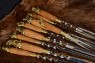 Пропонуємо Вашій увазі набір "Геркулес". Набір складається з 12 шампурів, серед яких є тонкі для овочів, товстіші Г-подібні для м'яса та широкі плоскі для стейків та птиці. І що найцікавіше - цей набір прикрашає жінка! У комплект входить вилка для зняття м'яса з литтям.