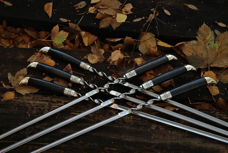 Шампура:6 штук, твердая нержавеющая сталь толщиной 3мм Г-образной формы