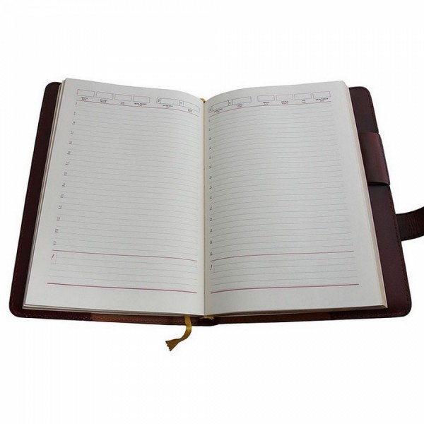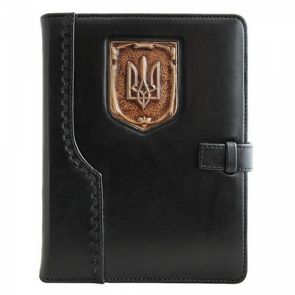 Шкіряний щоденник Герб України виготовлений за принципом суперобкладинки, що дозволяє міняти блок формату А5 після його використання на новий. Виріб буде служити довго, тому що виконаний з якісної натуральної шкіри. Усі етапи виготовлення виконуються вручну. Картинка на лицьовій стороні витіснена методом барельєфного (об'ємного) тиснення з позолотою. Зручність експлуатації дає можливість власнику користуватися улюбленим аксесуаром довгі роки. Це робить його дуже практичним.