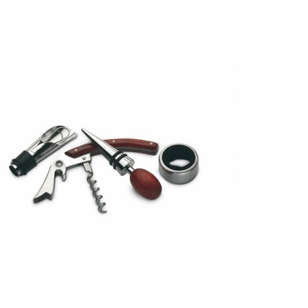 Винний набір у вигляді елегантної скриньки обтягнутий якісним шкірозамінником з імітацією під шкіру крокодила та укомплектований основними аксесуарами, необхідними для справжньої церемонії присвяченої дегустації вина.