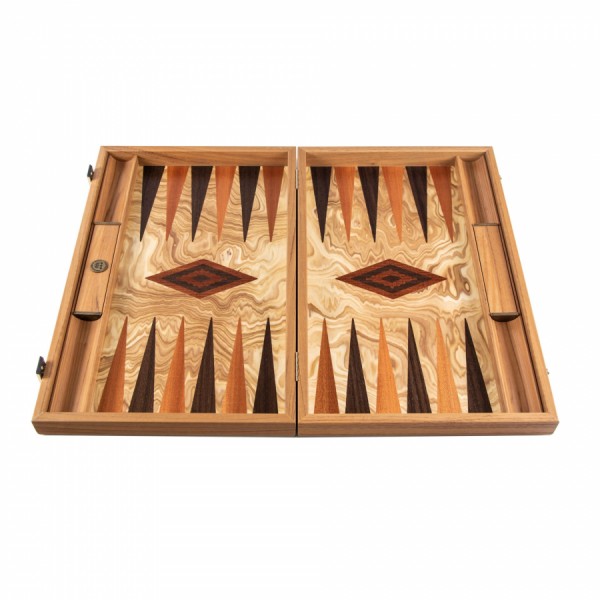 Ігрове поле виконане з чорного дуба із вкрапленнями з червоного капа та сірого клена. Грецька компанія Manopoulos створює високоякісні настільні ігри з 1972 року. Суворі вимоги до стилю, матеріалів та майстерності відображені у всіх ігрових наборах нард, які ними розроблені. Manopoulos шанобливо і з любов'ю ставляться як до своєї історії, так і до своїх міфів, тому в шахових наборах оживають їхні величні боги та їхні могутні герої. При цьому використовується найпередовіша технологія лиття та металізації та вибираються найкращі матеріали.