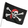 Прапор Піратський 90*60см - невід'ємний атрибут для декору піратської вечірки. На чорному тлі прапора розташований білий череп Веселий Роджер з червоною банданою та золотим сережкою. Є 2 отвори для фіксації прапора розміром 90*60см