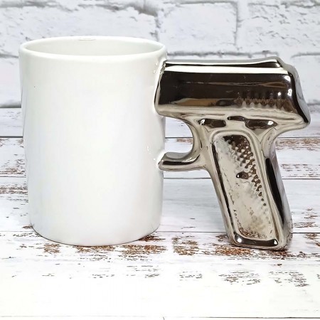 Чашка Пістолет чудове рішення для подарунка своєму коханому хлопцю. Ручка на цій чашці виконана у формі пістолета, що робить цю чашку трохи хуліганською. Незвичайний подарунок, який, безумовно, не залишиться непоміченим, а надалі, можливо, стане улюбленою чашкою свого власника.