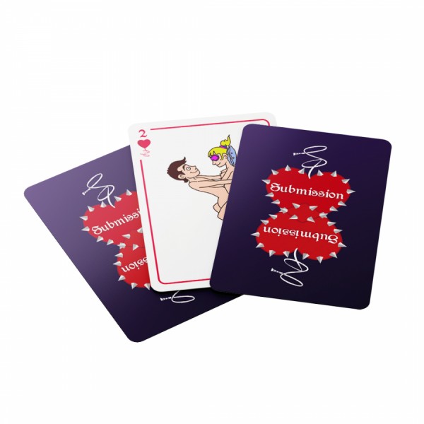 Еротична гра для закоханих Підпорядкування - це 54 карти, на яких пропонуються дії, пози та предмети для розваг з легким БДСМ акцентом. Гра здатна здійснити багато потаємних, таємних бажань. Ну чи просто зіграйте у карти, благо – це ще й колода гральних карт.