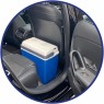 Вбудований вентилятор забезпечує постійний ефект охолодження. Кришка – знімна. Наявність фіксатора закритого положення у кришці попереджає випадання вмісту автохолодильника.