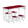 Складаний пікнік з чотирма стільцями для сім'ї або невеликої компанії - просто ідеальне рішення. Стіл та стільці дуже просто і швидко розкладаються та складаються. Ергономічна конструкція ніжок столу (дуги внизу столу) не дозволяє занурюватися в ґрунт. Всередині отвір під парасолькою.