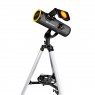Bresser Solarix 76/350 AZ (carbon) – універсальний дзеркальний телескоп за доступною ціною. Незважаючи на те, що телескоп рекомендований для астрономів-початківців, це аж ніяк не іграшка. 76-мм дзеркальний об'єктив дозволяє спостерігати позбавлене хроматичної аберації, досить контрастне зображення нічного неба. А високий показник світлосили забезпечить видимість планет та зірок слабшого світіння. Ви зможете розрізняти чіткіші контури кратерів на Місяці діаметром 8 км, зірки слабкого світіння (до 11,5 зіркових величин), Сатурн, Уран і Нептун у вигляді зірок, полярні шапки Марса. Туманності навколо сузір'їв Ліра та Оріон, що знаходяться на відстані до 4000 світлових років від Землі, стануть доступні Вашому оку у вигляді світлих досить контрастних плям.