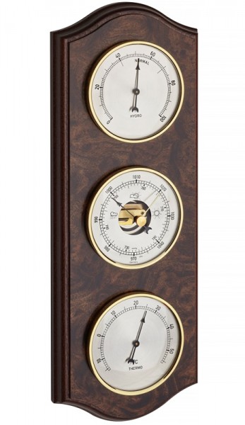 Ця класична метеостанція має особливу особливість: відкритий механізм дозволяє глянути на високоякісний механізм анероїдного барометра. Вимірювання тиску повітря дозволяє зробити місцевий прогноз погоди. У той час як погода покращується зі збільшенням тиску повітря, зниження тиску повітря означає, що ви повинні очікувати погану погоду. Контролюючи температуру та вологість у приміщенні, ви можете створити комфортний та здоровий клімат у приміщенні та заощадити на витратах на опалення.