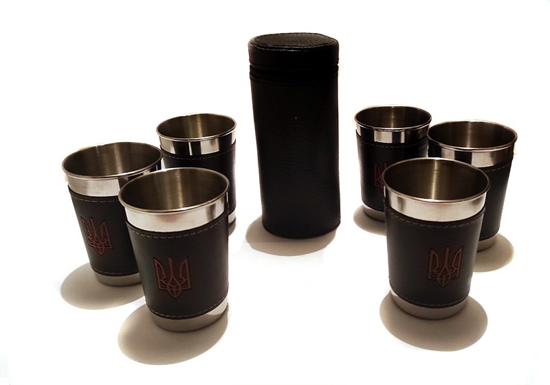 Подарочный набор из 6 стаканчиков по 150 мл в чехле из кожзаменителя.