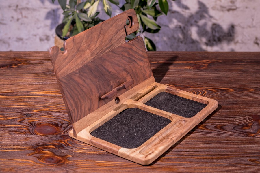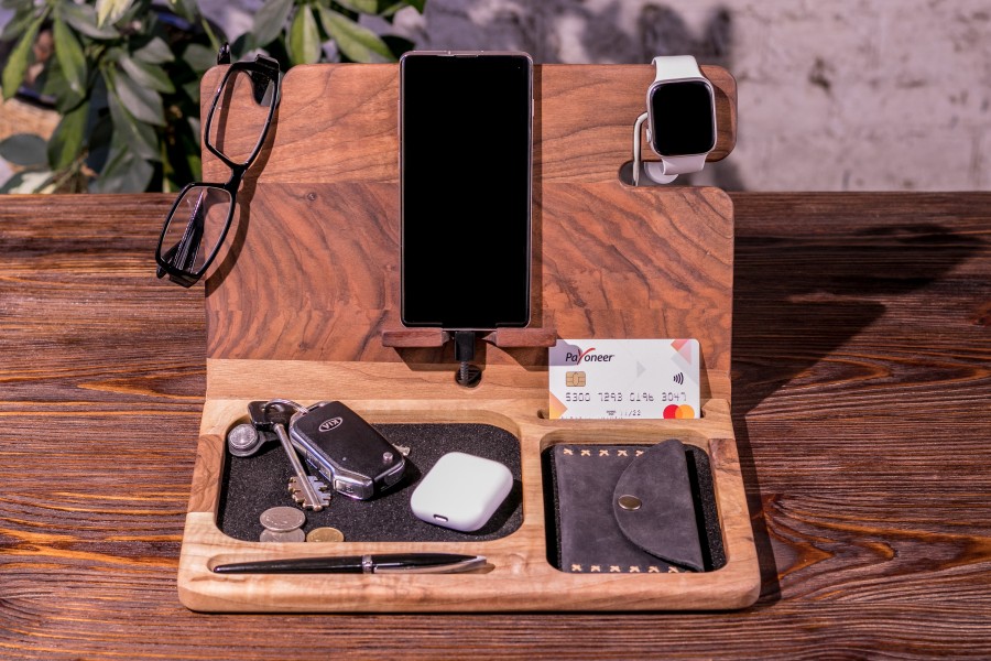 Багатофункціональний аксесуар органічно впишеться в інтер'єр і завдяки йому всі необхідні речі будуть у Вас під рукою. Ця підставка буде чудовим подарунком для людини будь-якого віку та професії. Зручний органайзер з деревини натурального горіха для Ваших повсякденних речей чудово виглядатиме як на робочому столі, так і в домашніх умовах.
