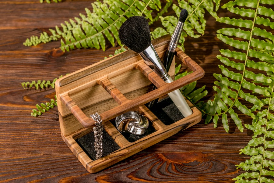 Удобный органайзер из древесины натурального ореха для Ваших повседневных вещей будет отлично смотреться как на рабочем столе, так и в домашних условиях.