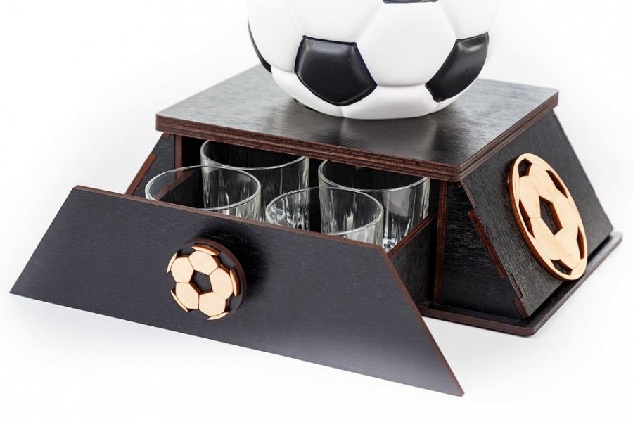 Бар у вигляді футбольного м'яча. Улюблений подарунок для шанувальників футболу. Стане функціональною окрасою кабінетів та знайде своє місце серед спортивних трофеїв чи фанатської атрибутики.