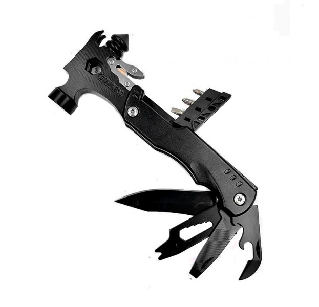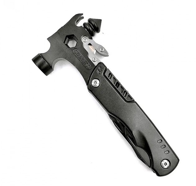 Комплектуючі, що входять до комплекту: плоскогубці, молоток, ніж, кусачки, гайковий ключ, викрутка, аварійний свисток, захисний чохол, пожежний стартер, гвоздодер, відкривачка для пляшок, палій.