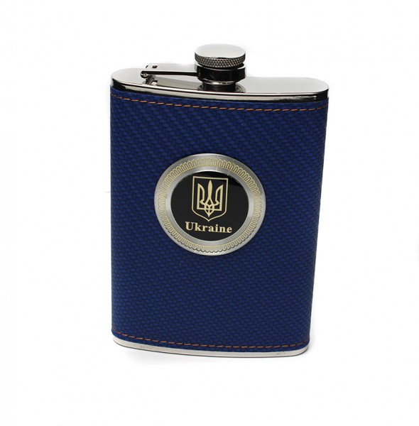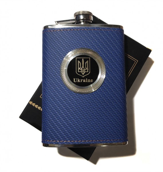 Фляга з харчової нержавіючої сталі обтягнута шкірою Ukraine