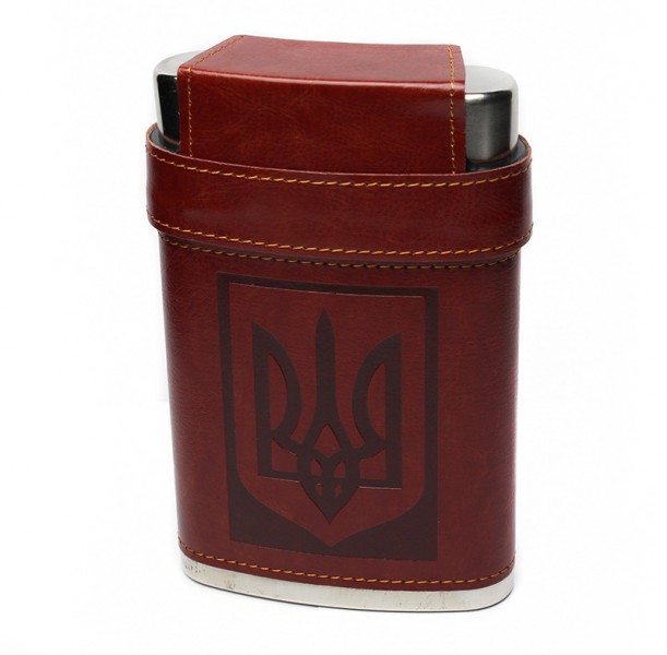 Фляга з нержавіючої сталі обтягнута шкірою Україна + чарки