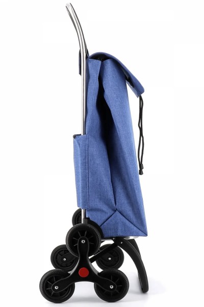 Сучасна сумка-візок Rolser I-Max Tweed 6 43 Azul (IMX383-1026) ідеально підходить для легкого підйому сходами і стане надійним супутником при поїздці за покупками до торгового центру або ринку продуктів. Фірмове алюмінієве шасі візка дозволяє транспортувати вантаж вагою до 50 кг. Розкладна основа виконана з алюмінію, а опора – із міцного термостійкого пластику. Шість литих ультралегких коліс сприяють підйому будь-якими сходами.