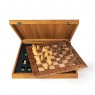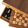 У набір входить дошка для шахів, що ідеально поєднується, з червоного дерева, яка була виготовлена в майстерні Греції досвідченими майстрами з використанням мистецтва маркетрі. Фігурки обтяжені та мають висоту короля 7,6 см.