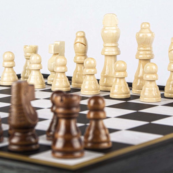 Вінтажний стиль - комбінована гра 4 в 1 у дерев'яному футлярі венге - шахи/нарди/людо/змії.