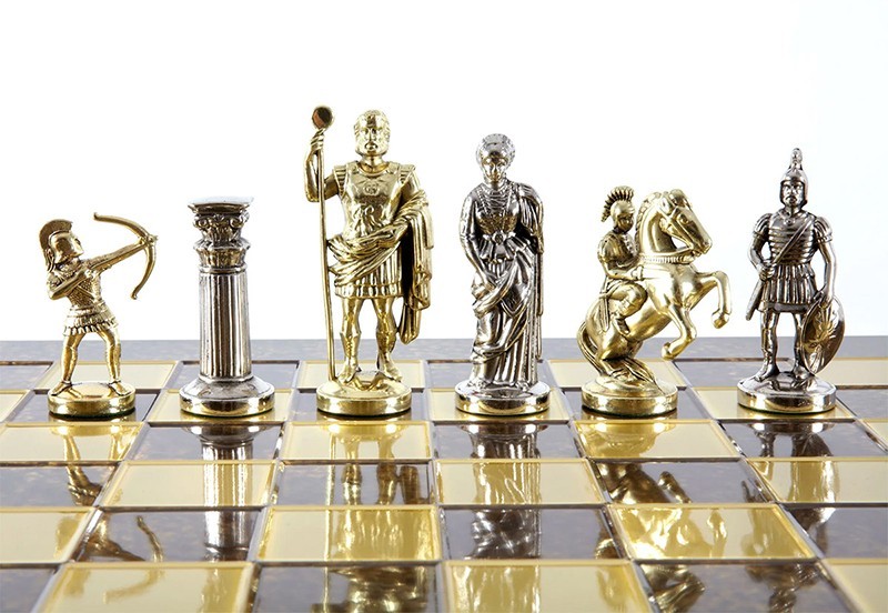 Комплектація: 32 шахові фігури з цинкового сплаву, латунна шахівниця