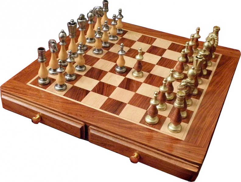 Дошка виготовлена з дерева з висувним шухлядком для зберігання фігурок.