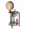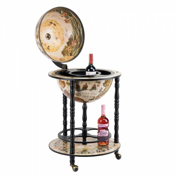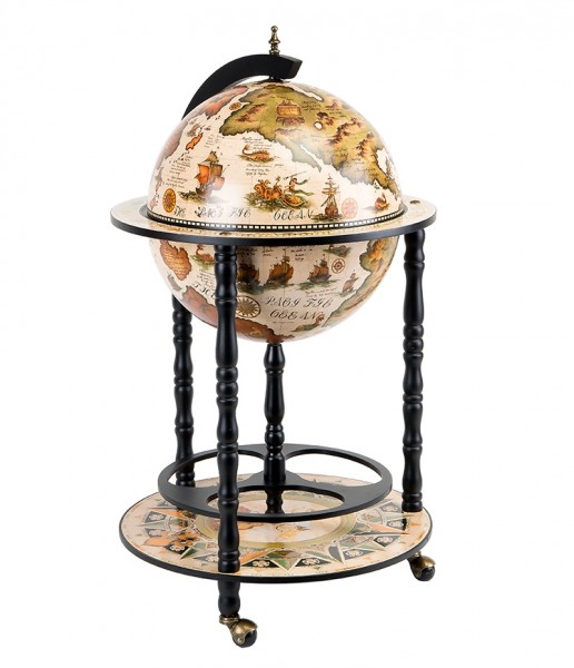 Глобус бар – естетичний та функціональний кейс для алкоголю у формі глобуса. Це компактна та стильна конструкція на колесах, яка обертається навколо своєї осі як справжній глобус та розкривається всередині, де є внутрішні полиці для зберігання алкоголю та барних аксесуарів.