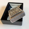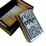 Металева запальничка із сріблястим покриттям (сатин) з об'ємною 3D емблемою у стилі Steampunk. Поставляється у подарунковій упаковці. Для оптимальної роботи заправляйте запальничку Zippo.