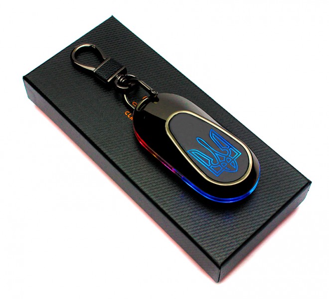 Запальничка брелок usb Тризуб з підсвічуванням у подарунковій упаковці