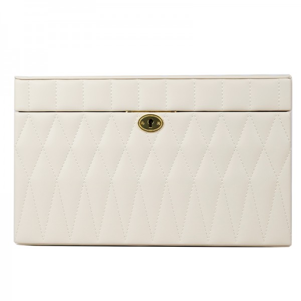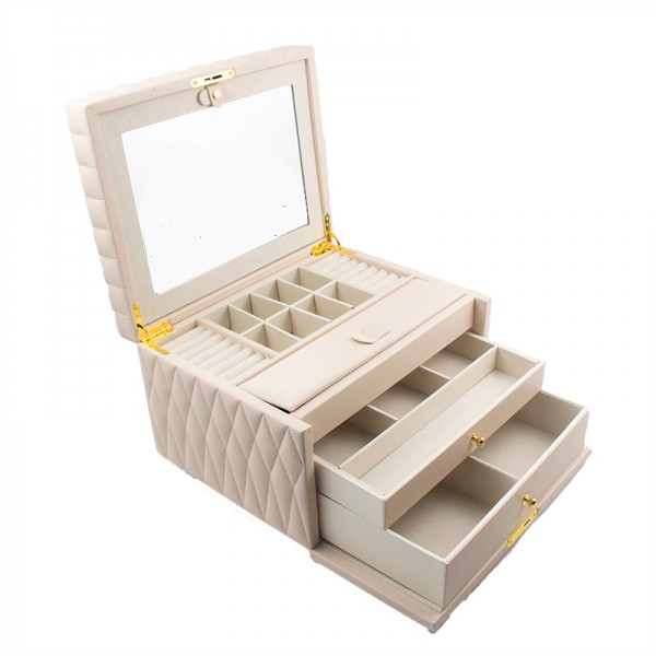 Стильна кремова скринька для прикрас з дзеркалом екошкіра багатоярусна 30.5*24*18.5 см