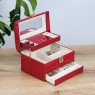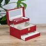 Шкатулка для прикрас з дзеркалом і дорожньою скринькою, поліуретанова шкіра червона 22*16.5*13 см