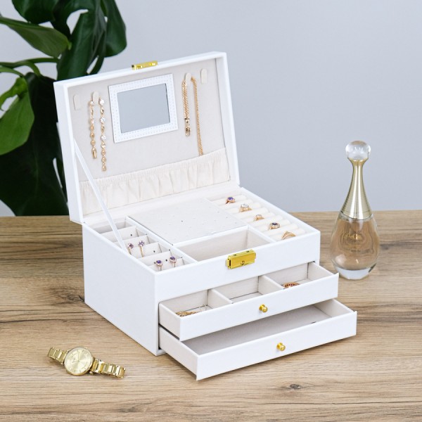 Скринька для прикрас з дзеркалом , екошкіра біла