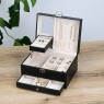 Скринька органайзер для прикрас з дзеркалом, екошкіра чорна