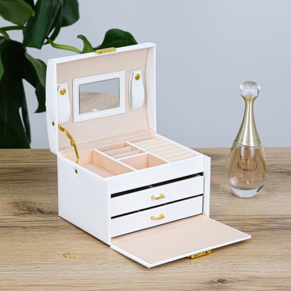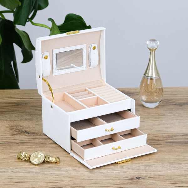 Скринька для прикрас з дзеркалом екошкіра біла