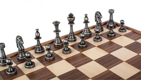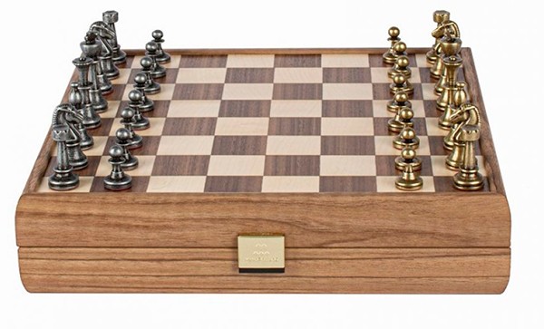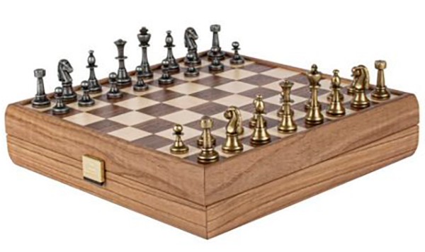 Комплектація: 32 шахові фігури з цинкового сплаву, шахівниця з горіха та дуба, висота короля 5 см