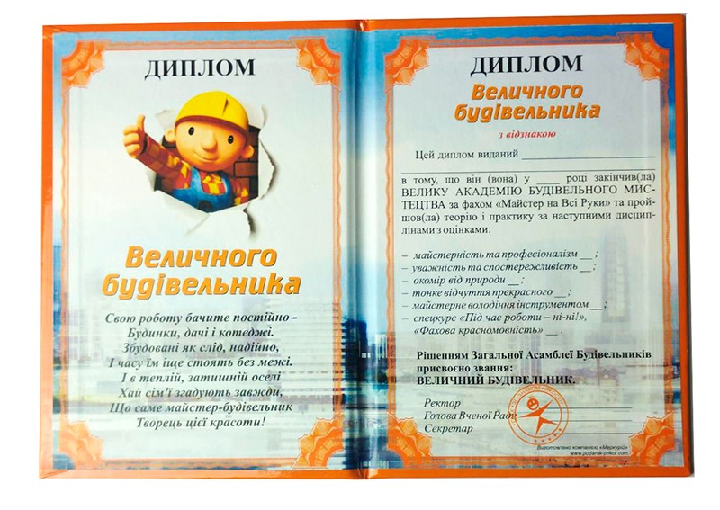 Прикольний Диплом Величного Будівельника