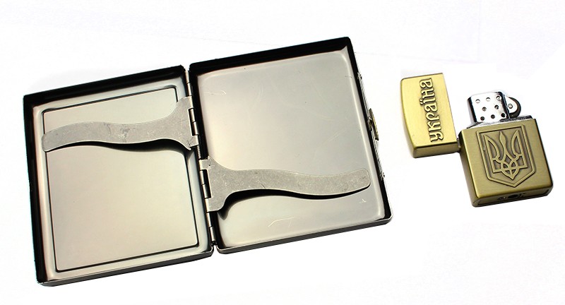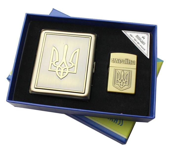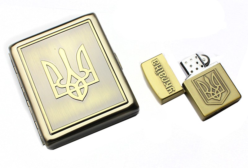 Набір для чоловіків портсигар та запальничка з гербом України