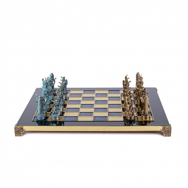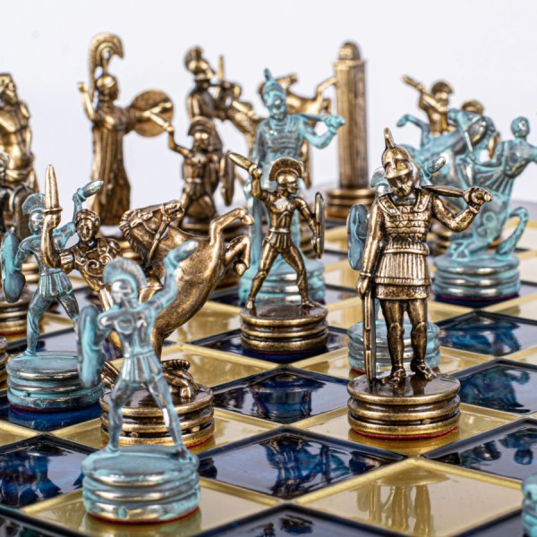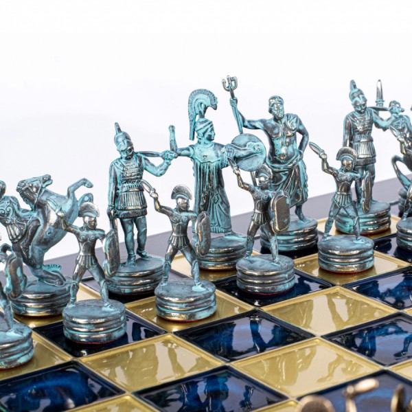 Ця версія середнього розміру з ефектними синіми та коричневими фігурами втілює легендарне протистояння Посейдона та Афіни. Вага набору — значні 5,80 кг — перетворює його на солідний витвір мистецтва, який стане не лише стратегічною грою, а й розкішним елементом інтер'єру.