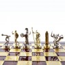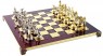 Шахи, дискобол "Manopoulos", "Геркулес та напівбоги Олімпу", латунь, дерев'яний футляр, колір дошки червоний, розмір 36 х 36 см та ігровим полем 28x28 см на витончених ніжках стане чудовою прикрасою інтер'єру. Висота фігур 6,5 см, вага 5 кг. Шахові фігури в цьому наборі кольору глянсового срібла та глянсового золота.