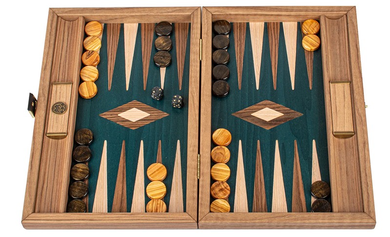 Елегантна дерев'яна конструкція: Ігрове поле виконане з чорного дуба з інкрустацією з горіха та сірих точок, створюючи гармонійний баланс натуральної текстури та сучасного стилю.